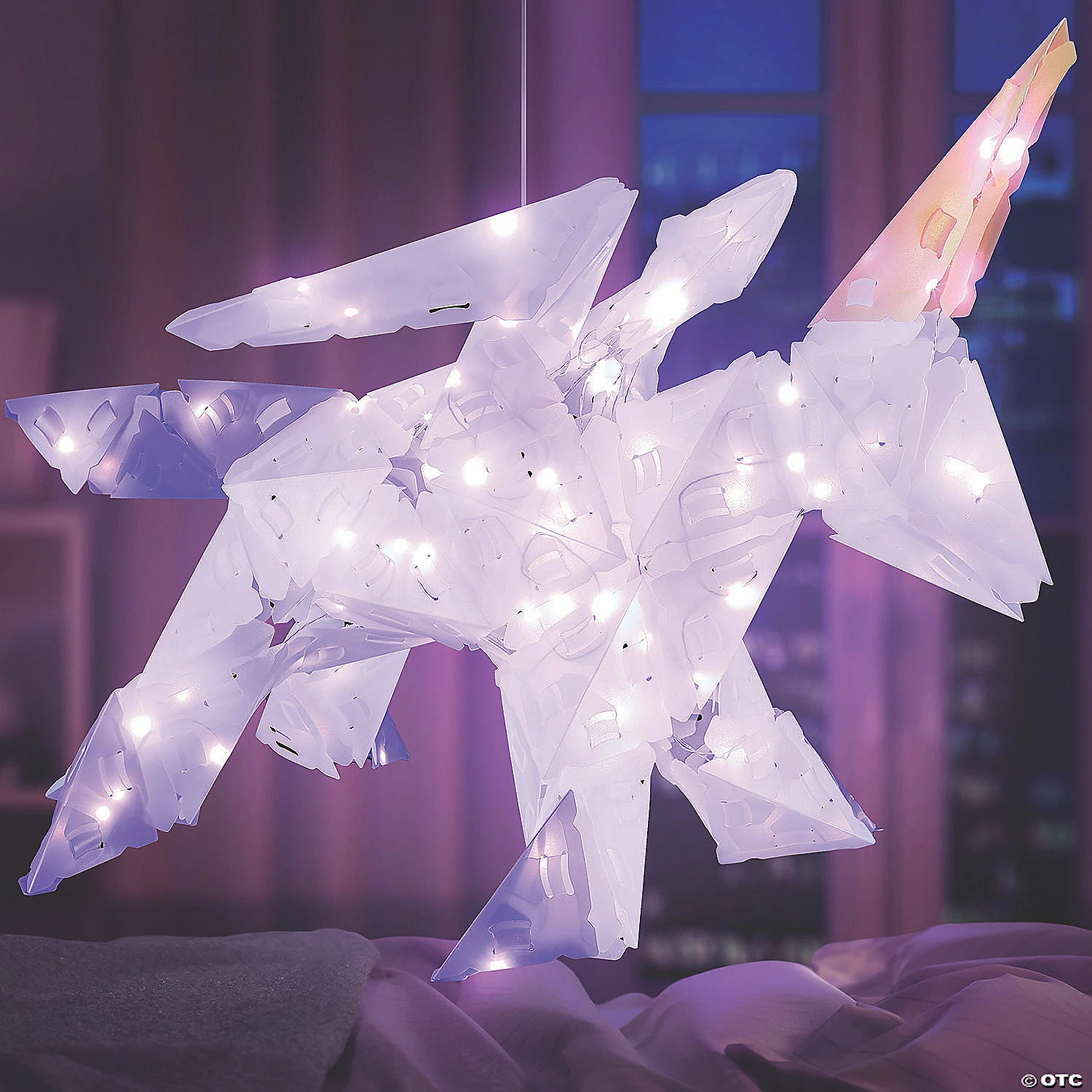 Creatto projects let kids create 3D designs using plastic squares. After they’ve constructed their origami-like structures with the flexible, interlocking tiles, fill them with a string of LED lights! Design and craft illuminated creatures that literally light up your life. Creatto projects are wonderful, screen-free activities that keep kids occupied for hours. Follow the instructions to build one, then disassemble and try another. The Sparkle Unicorn and Friends set comes with instructions and supplies to build a unicorn, bunny, polar bear and ballerina. All skill levels can get involved with the illustrated manual and easy, step-by-step instructions. The possibilities are limitless, and the result is dazzling! • Creatto Sparkle Unicorn and Friends Kit includes flexible tiles, LED lights, and instructions• Encourages problem solving, fine motor skills, patience, and innovation• Models measure up to 3 ft. long• Lights powered by USB cable; USB power adapter not included.