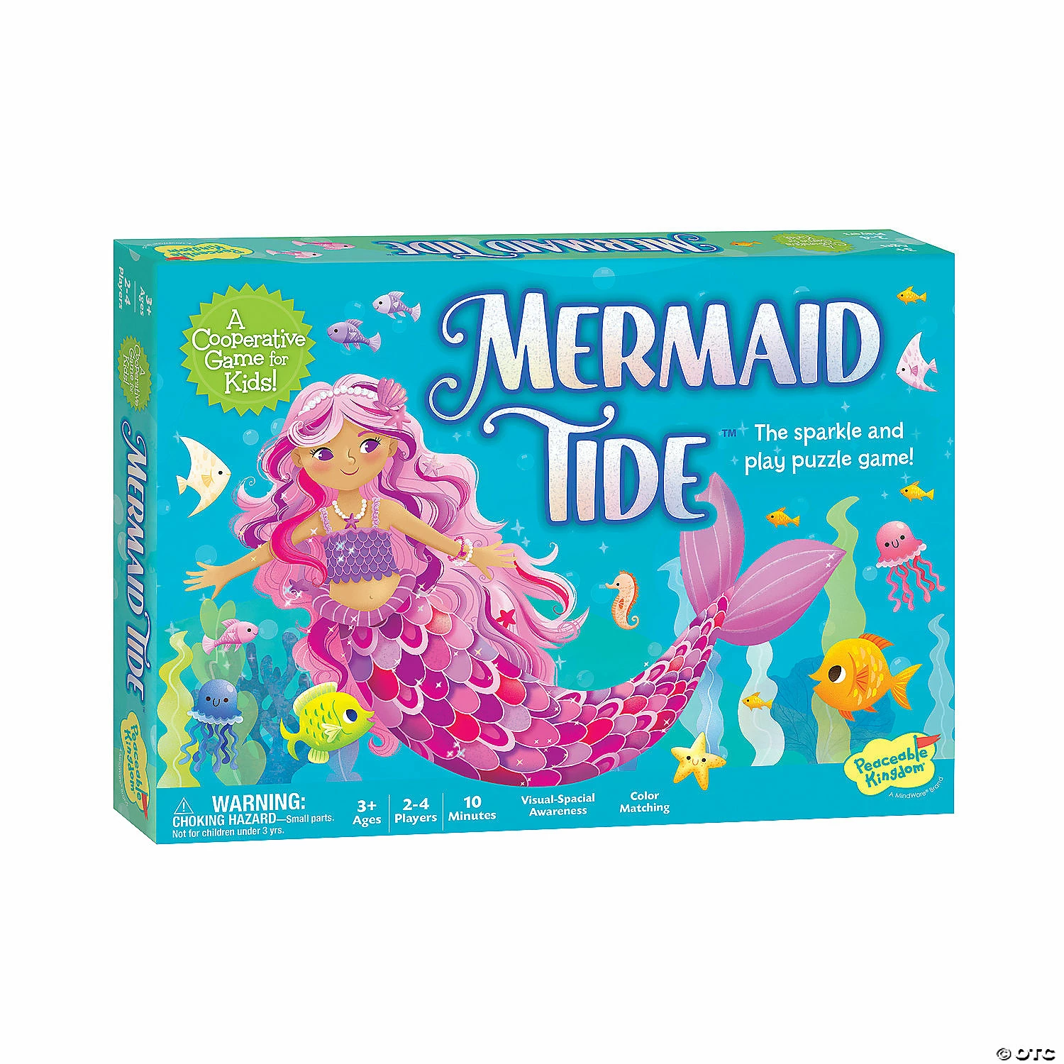 Race against the tide! The mermaids have been busy collecting sparkling shells on the island. But-oh no! The ocean’s tide is washing them away! Spin the spinner, choose a puzzle piece that matches the spinner color, and add it to the board. Spin a shell and take one away from the board. Work together to build the three mermaid puzzles before the tide washes away all of the shells and everyone wins!⢠A puzzle that’s also a game⢠Cooperative game that builds confidence, encourages inclusion, and teaches kids to share⢠For 2-4 players