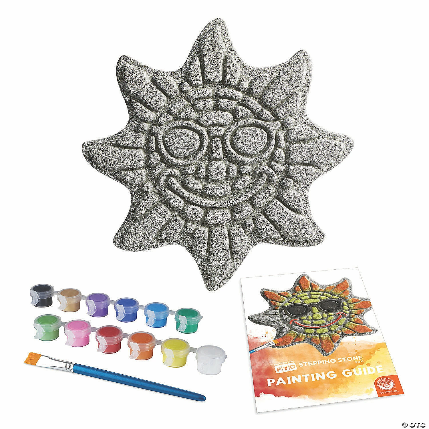 A dozen vibrant paints allow for endless creativity with Paint Your Own Stepping Stones—mix, blend and add custom color accents right out of the box – no cement mixing necessary! Once painted, bake the stone in your oven for a long-lasting, weather-resistant finish. Display this sunny stepping stone or make a whole pathway of colorful designs to transform your garden, backyard or patio! • Decorate your outdoor living space with color• Develops creativity, hand-eye coordination and color mixing skills• Weather-resistant finish once baked• Pairs well with PYO Stepping Stone Moon and Stars• Includes a 9″ x 9″ cement stepping stone, 12 paints, a paintbrush and instructions• Printable color planning template