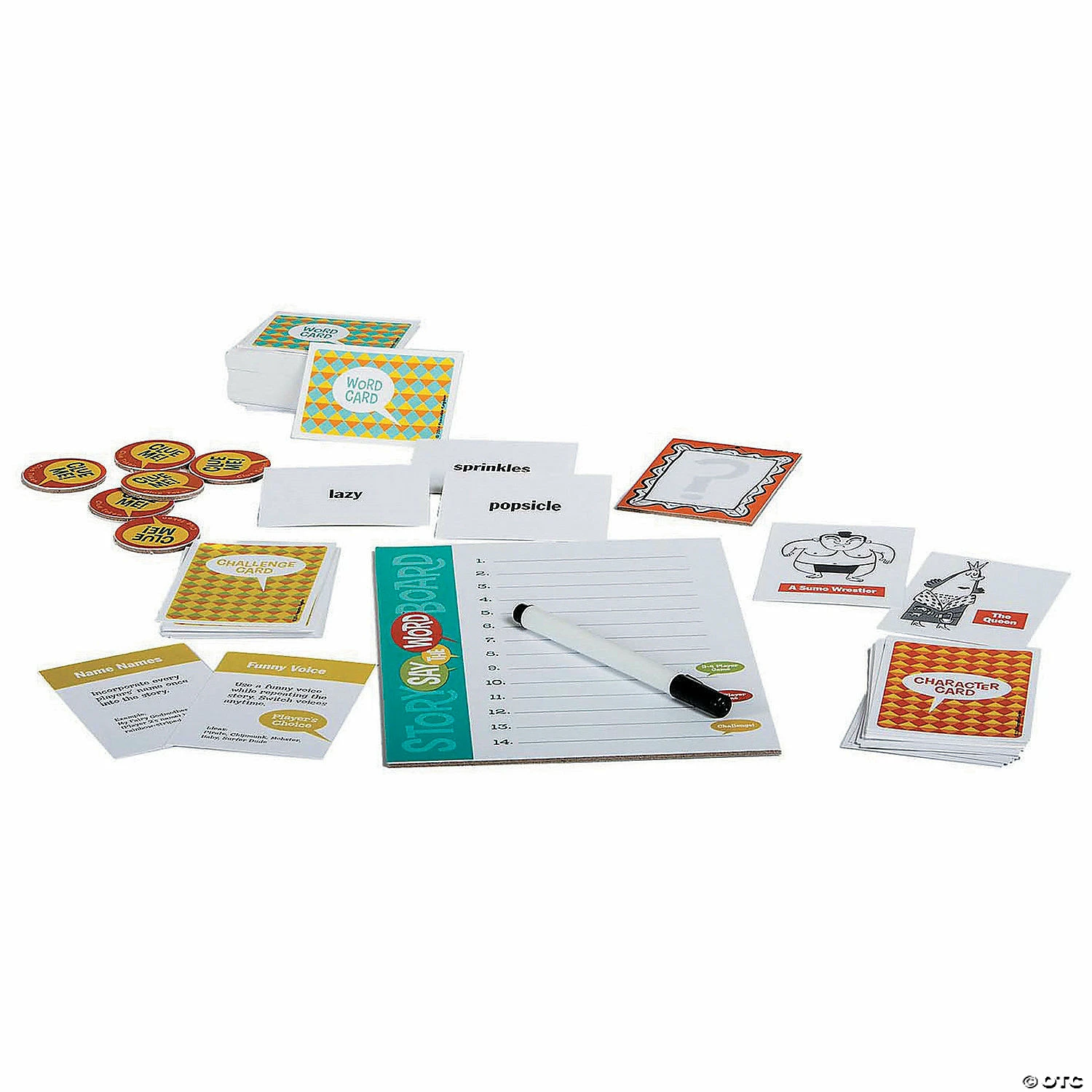 Take a zany character, some silly words and an offbeat challenge and put them all in one phrase or sentence at a time. Can’t recall a word? Have the other players “charade” it for you. Repeat the story start to finish for the big win.When families and friends can work together and are having fun doing it, everyone wins! Say the Word combines hilarious fun and the skill of memory for a game that’s great for parties or family game night!INCLUDES: 200 word cards, 19 character cards, 16 challenge cards, 1 anybody board, 1 story board, 1 dry erase pen, 5 clue tokens and instructions.