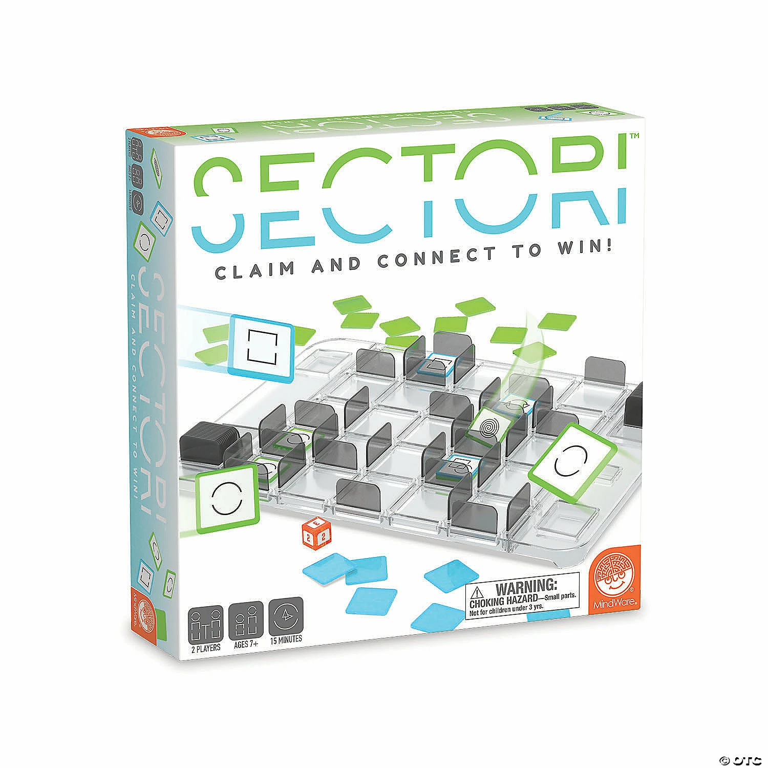 This modern board game is easy to learn but takes time to master. Based off the dots-and-squares game, children and parents alike will enjoy facing off. On each turn, roll a die and place your walls. Build and claim 4-sided “sectors” by placing the last wall to complete a 1×1 square. Try to block your opponent from claiming sectors or get lucky and draw special tiles that give you extra actions. Claim 5 sectors in a row and you’ve won Sectori! It’s always an exciting brain challenge – whether it’s your 4th or 40th round!• Claim five sectors in a row to win this engaging game of strategic planning• Kids develop big-picture and logical thinking, strategy and creativity• Perfect for kids and adults who enjoy 3D puzzles, logic games and mazes• Modern style – a perfect coffee-table game• For 2 players• Includes 60 walls, 36 action tiles, 1 game board, die and instructionsDownload Rules