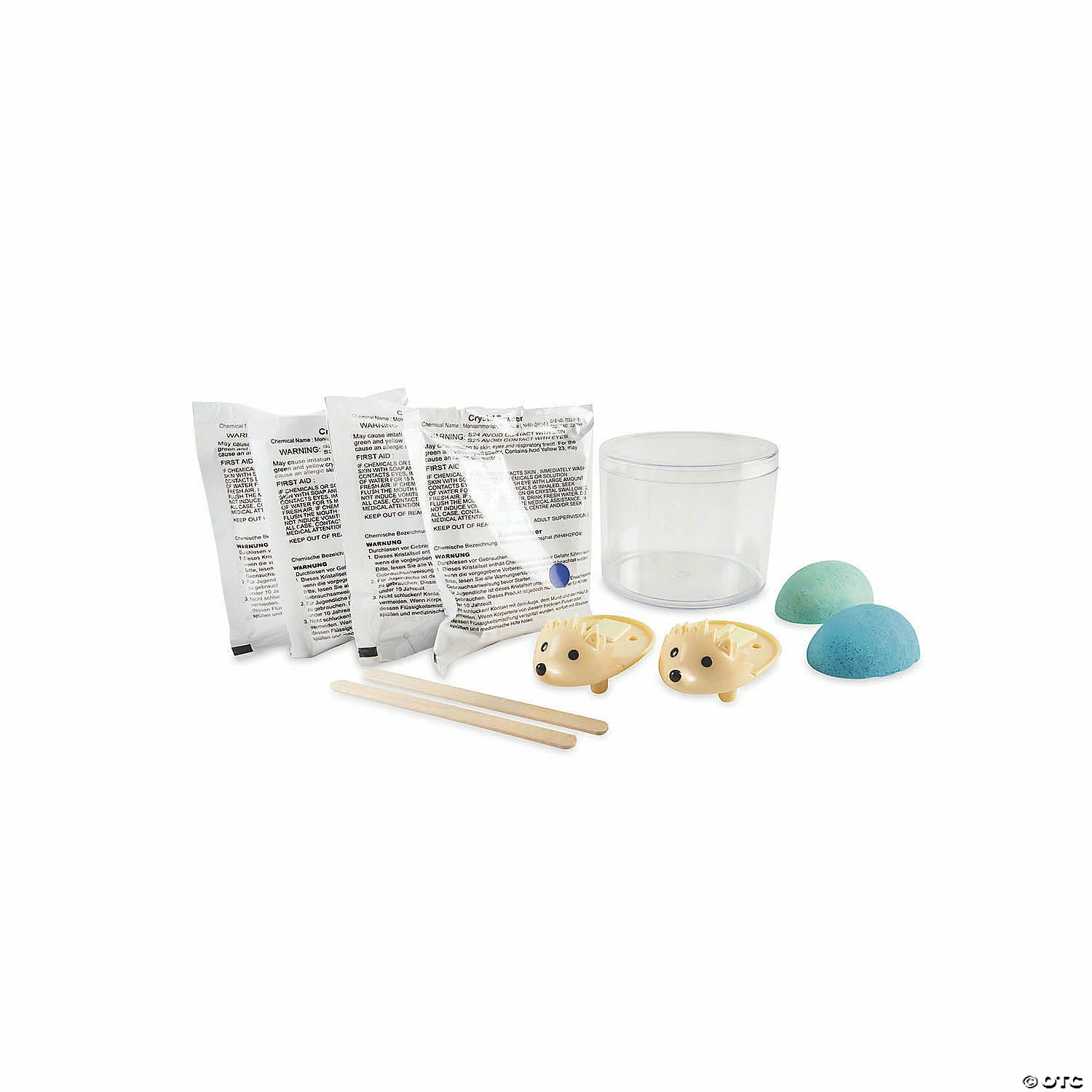 Create a dazzling duo of hedgehogs with sparkling crystal spikes! This kit includes everything you need to transform two hedgehog figurines into modern molecular masterpieces. Through the process of crystallization, your plain hedgehogs will magically form crystal quills in blues and teals overnight. They’re a spectacular feat of science that will add brilliant bling to your favorite space!• Grow your own sparkling hedgehog décor!• Encourages an early, hands-on interest in science for kids• One of the coolest gifts for teens and tweens• Includes 2 hedge hog molds, 2 colors of crystal powder, 2 stirring sticks, growing container and instruction manual