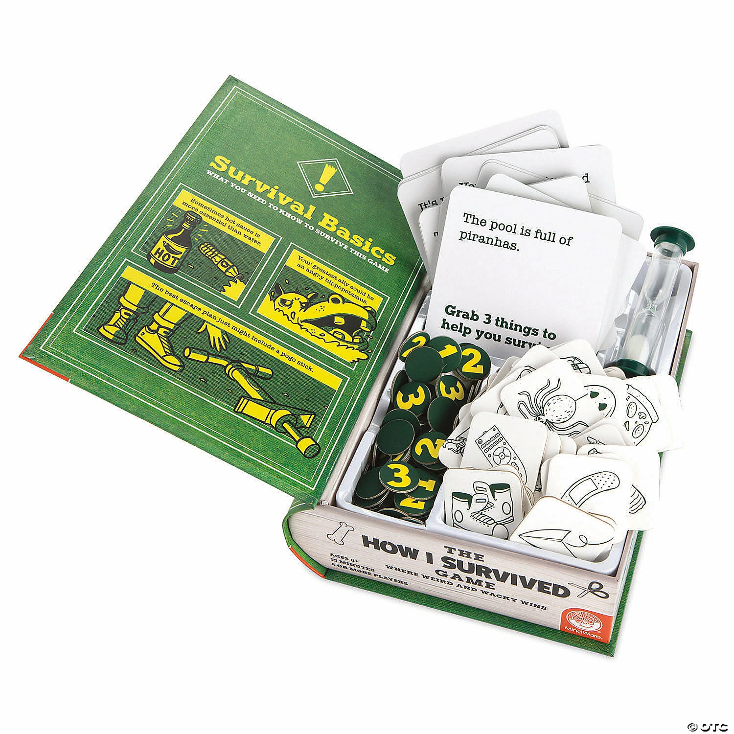Your bed is floating in an ocean! Your dog turned into a zombie! How will you survive? To play, the judge for the round draw a scenario card and reads the ridiculous scenario out loud. The other players race to grab object chips! Will that toilet bowl help you? What about the pogo stick? Once you have your chips, you’ll have to stretch your imagination to create your own survival plan. Practice improvisation and make your plan clever, creative or funny – whatever it takes to convince the judge to award you survival rations. How will you defeat a giant llama with hot sauce? Or will you survive lunch-lady ninjas with a bucket of worms? This wild and weird think-on-your-feet game will have your kids in fits of giggles! And whoever has the most survival rations at the end of the game wins!• Create your best survival plan with only your brain power and whatever 3 wacky objects you manage to grab! • Kids practice creative thinking, problem-solving and improvisation• Fun party game for kids and adults• For 4 or more players• Includes 55 double-sided object chips, 80 survival scenario cards, 75 scoring rations, 30-second timer and instructionsDownload Rules